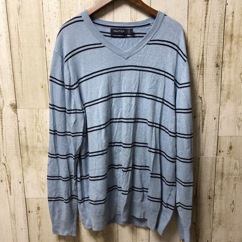 - NAUTICA ノーティカ 長袖 ニット Lサイズ ボーダー 刺繍ロゴ