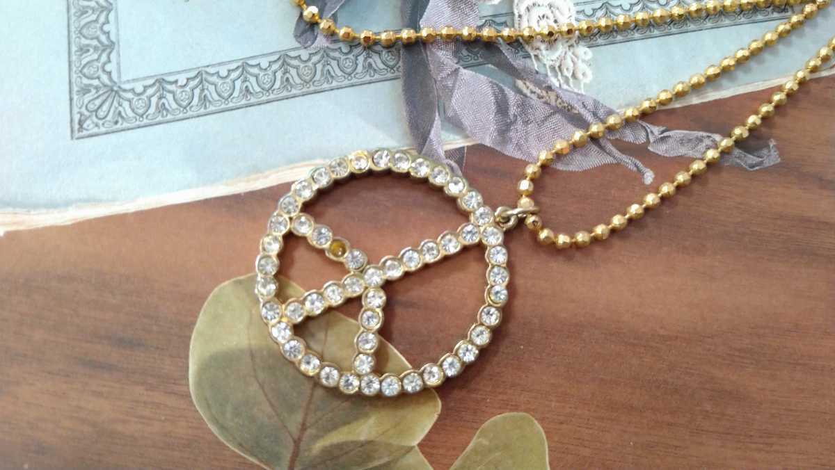- □訳あり□ラインストーン×ピースマークのネックレス□