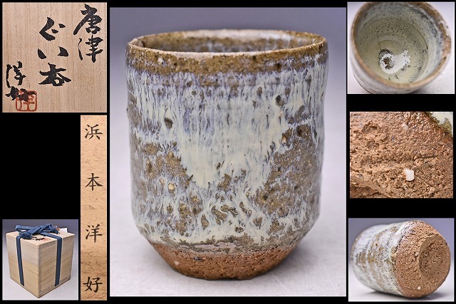 - 浜本洋好 ★ 唐津 ぐい呑 ★ 共箱 栞 ★ 斑唐津 酒器 ★ 古唐津研究 ★ 難あり ★