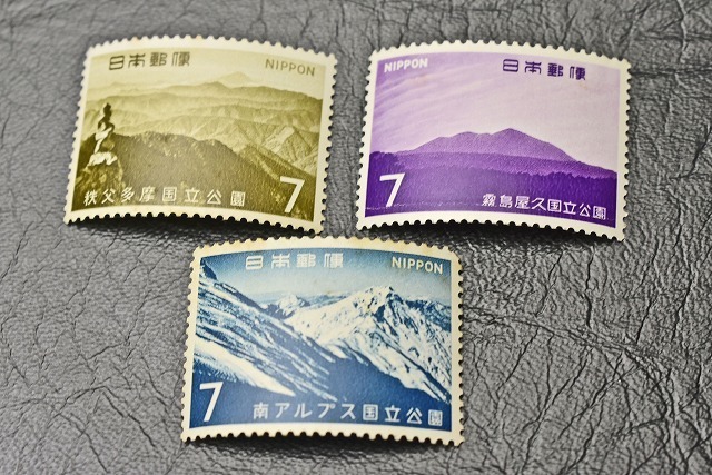> 【切手】国立公園シリーズ 未使用 ・秩父多摩国立公園・南アルプス国立公園・霧島屋久国立公園 5円切手