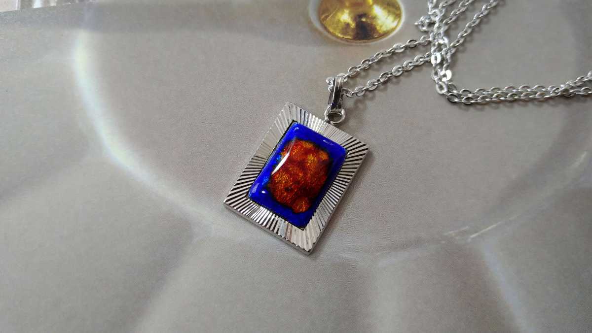 - □シルバーカラー×青&茶オレンジ模様・スクエア・ネックレス□