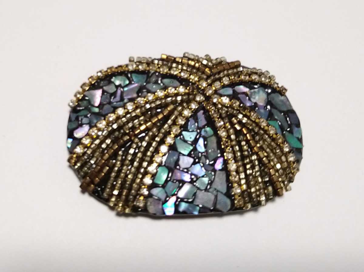 - ◇ 螺鈿細工 ビジュー 2way 帯留め ブローチ ◇ ビーズ 貝細工
