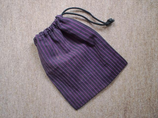 - アジア面白雑貨*未使用・古い紫の縞の生地の巾着☆ポーチ小物入れ信玄袋リメイクハンドメイドバリ島