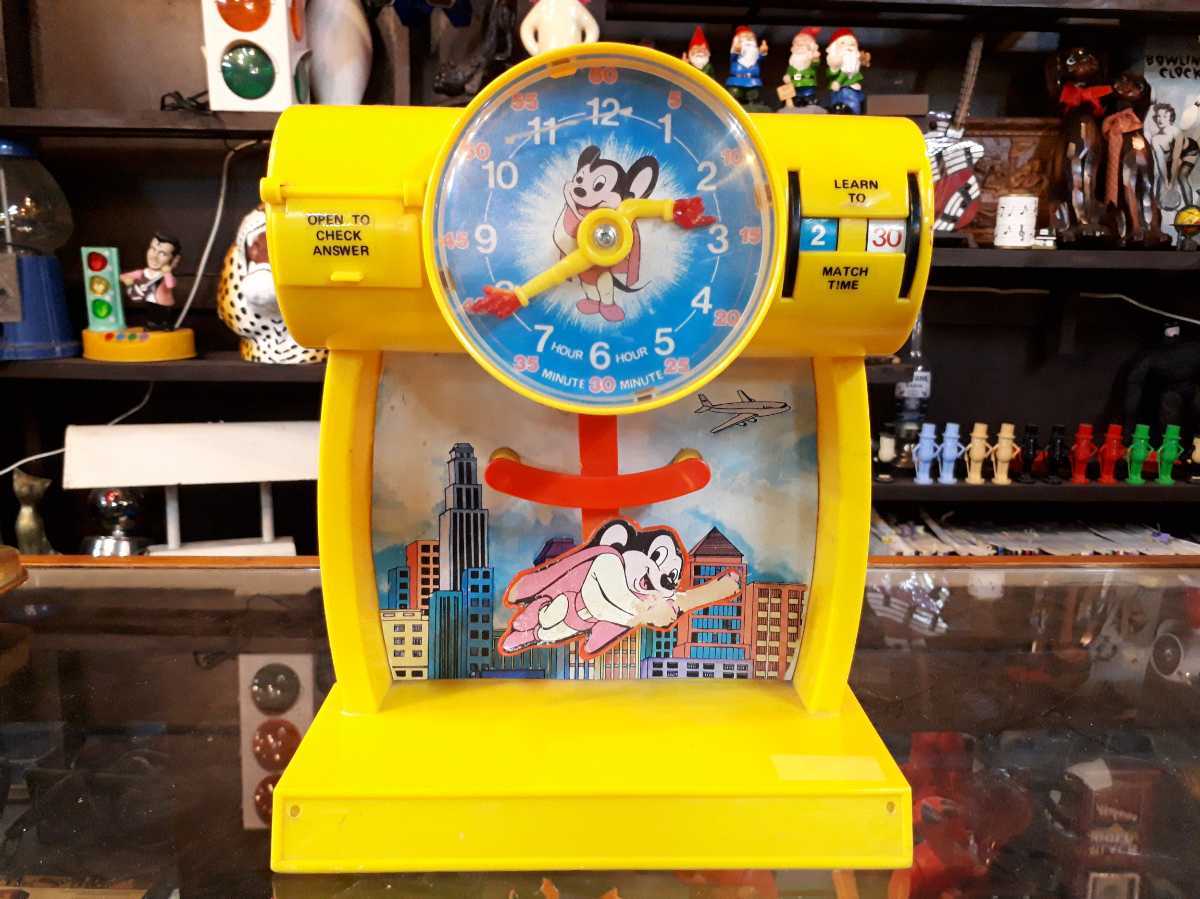 - アメリカン雑貨キッズスタイルビンテージmighty mouseマイティーマウス振り子時計型知育玩具