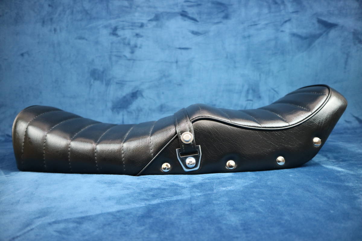- Z250FT 黒皮 ボタン 変形 鋲打ち タックロールシート /ブラック レザーKZ250Aリベット 完成品 アンコ抜き タックロール シート