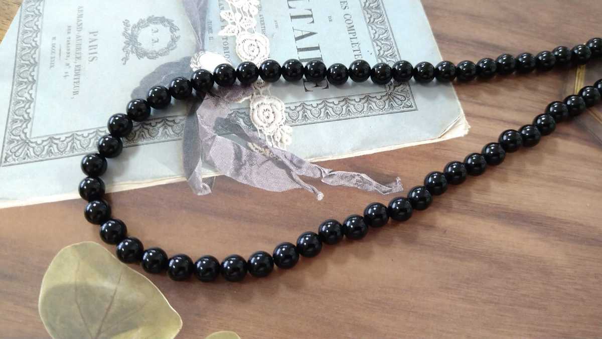 - □留め具SILVER刻印□黒ビーズのネックレス□