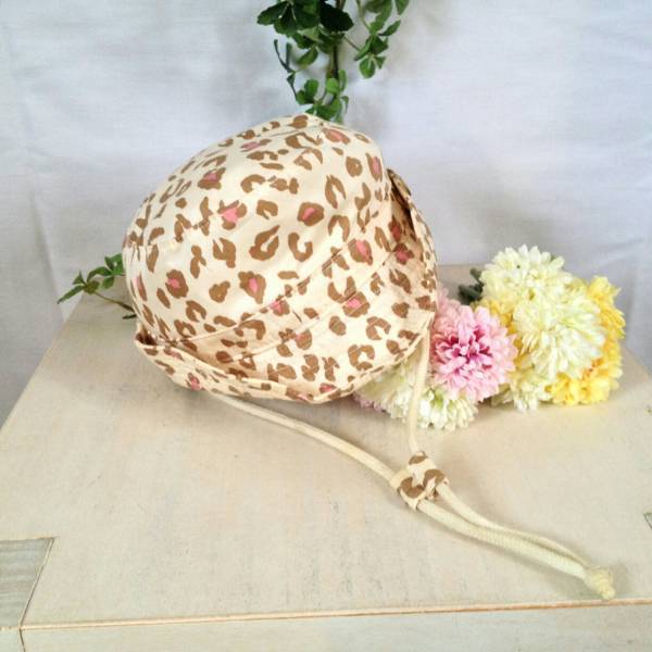 - ◆キューピー◆可愛いレオパード柄のひも付きハット◆48cm◆