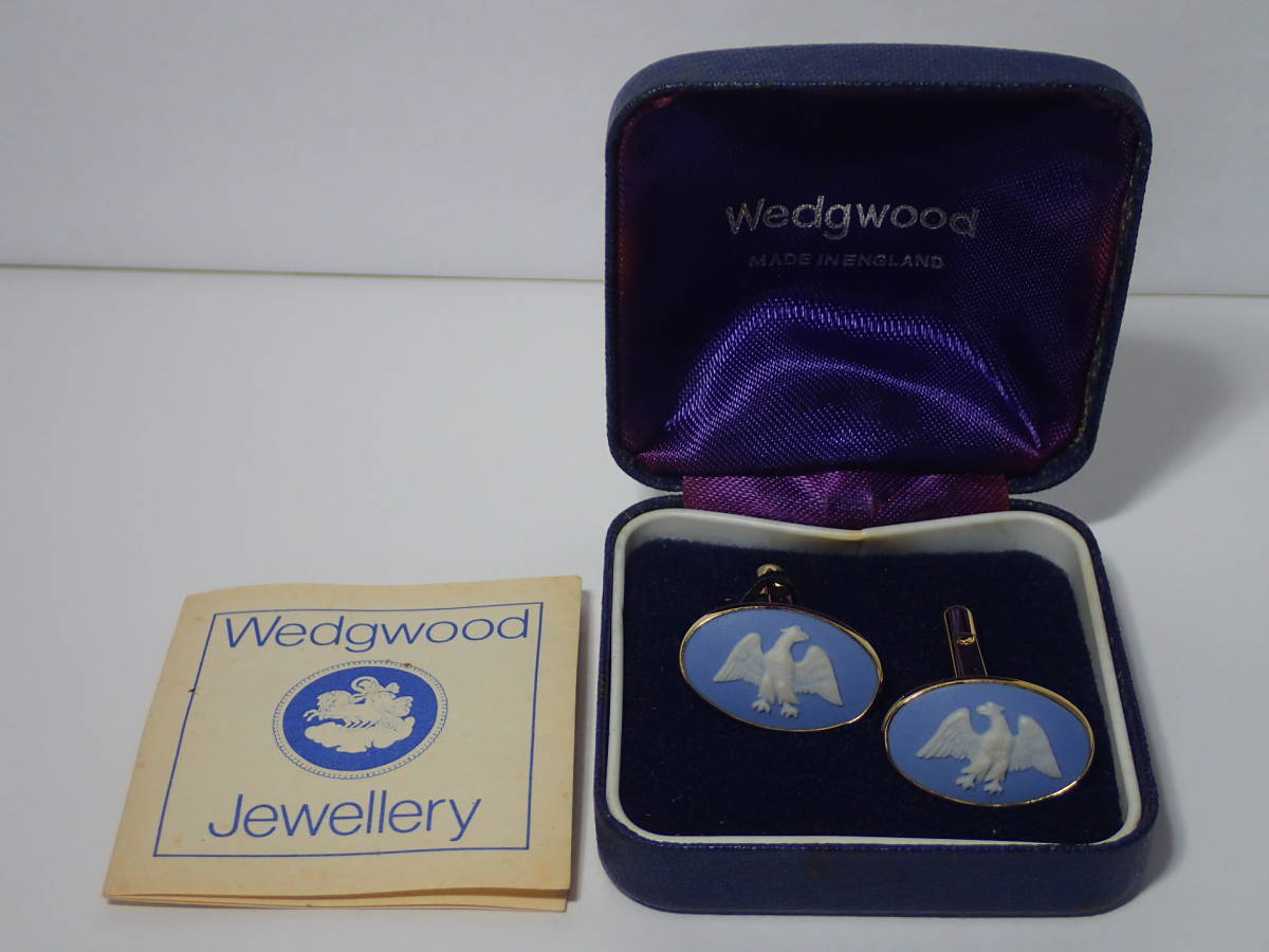 - WEDGWOOD ウェッジウッド カフス 箱、栞あり ブルー×ゴールド 鳥 楕円形 カフスボタン