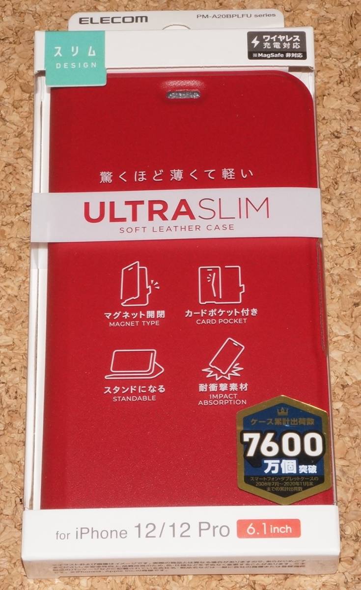 > ★新品★ELECOM iPhone12/12Pro レザーケース Ultra Slim レッド