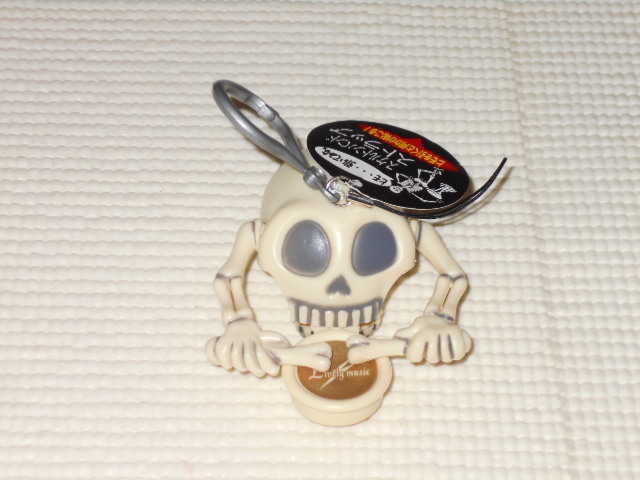 - スケルトンバンド ストラップ 金 タグ付 ヒモを引くと太鼓をたたきます