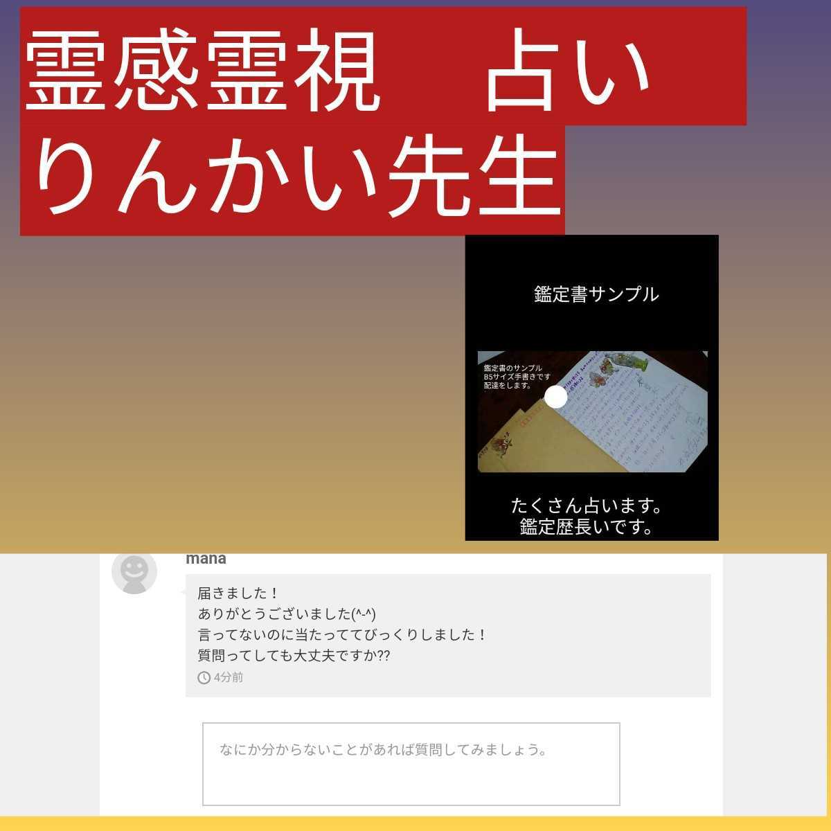 - ○霊感霊視りんかい先生 悩み受付不倫仕事悩み恋愛全て見ます。手書き鑑定書配達 金運りんかい先生お守りつき