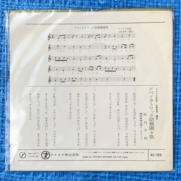 - アベノカトリック幼稚園園歌 飯島幸枝 関西音楽企画オーケストラ 7インチEP