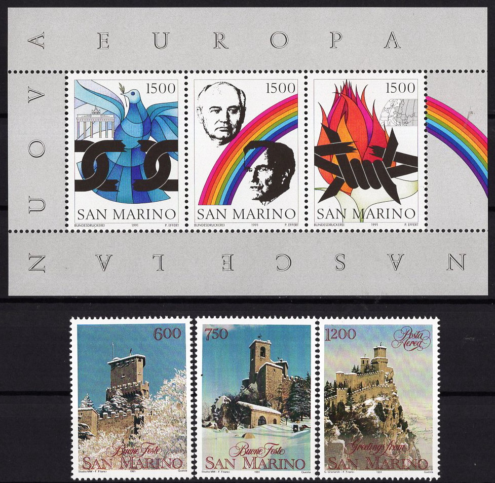 - ★1991年 サンマリノ - 「新ヨーロッパの誕生」小型シート+「ロッカマッジョーレ」3種完 未使用(MNH)★VF-477