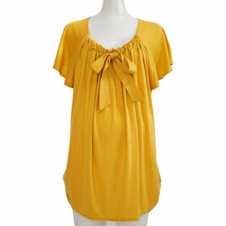 - [日本製]冷感素材の授乳服 チュニック ワンピース/マスタード 新品・タグ付き マタニティ 授乳服