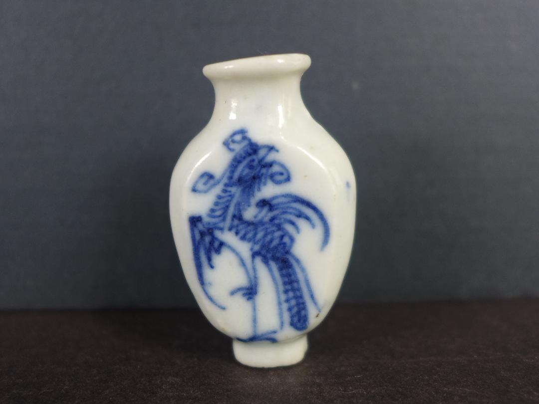 - ★ 珍品 時代物 中国清朝 鼻煙壷 小壷 小瓶 鳳凰染付 陶磁器 骨董 レトロ アンティーク ★