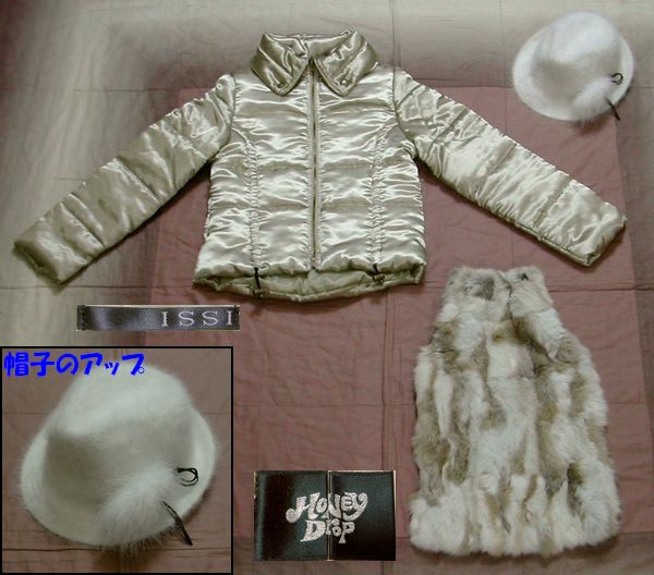 - ■未使用:ISSIジャンパーとHoneyDrop毛皮トップス+帽子 M DmD76
