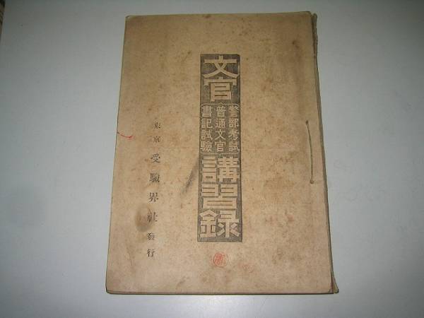 ご覧いただき有り難うございます。 文官講習録 警部考試普通文官書記試験 受験社 大正9年発行 です。