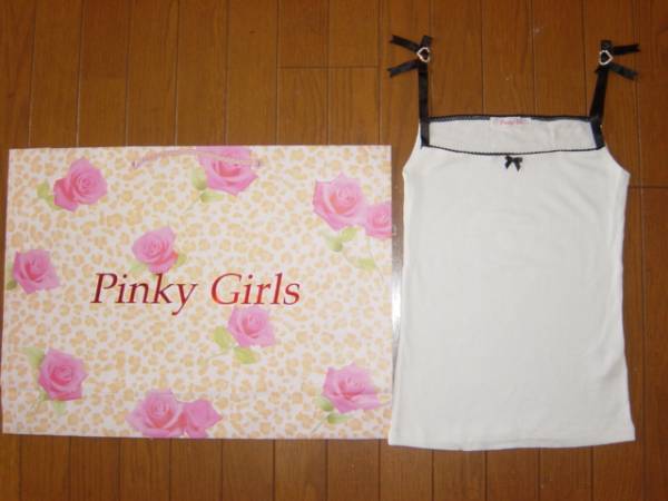 - 新品ピンキーガールズ★黒リボン ビジュー ハート白キャミソール