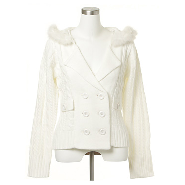 - 新品ミッシュマッシュ編みニット ラビットファー白パーカーMISCH