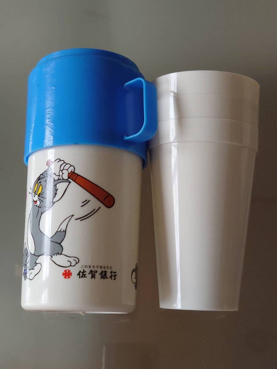 - 佐賀銀行 トムとジェリー コップ コップ入れ ピクニック 水筒/スープ/アンティーク/広告/ノベルティ/企業