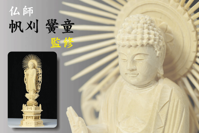 > 仏像 ■ 6寸 ■ 阿弥陀如来立像 六角台座 白木 浄土真宗 本願寺派(西) 西本願寺 お西 ご本尊 ■ 仏具(高さ40cm×幅15cm×奥行き11.5cm)