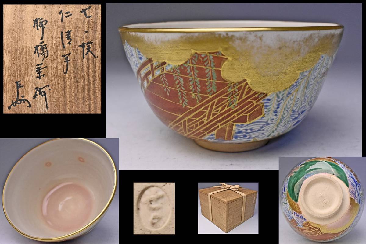 - 復興膳所焼 ★ 仁清写柳橋茶碗 ★ 即中斎書付 ★ 初代岩崎健三作か ★