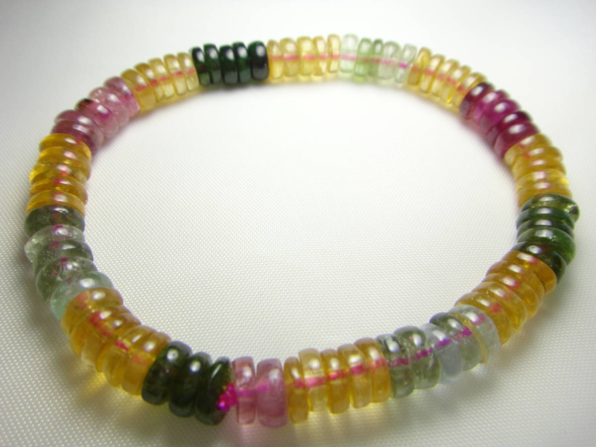 - 天然石 マルチカラートルマリン 高品質! ボタン型 ブレスレット Y090
