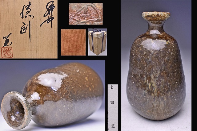 > 太田篤 ★ 備前徳利 ★ 共箱共布栞 ★ 塗り土が釉薬化 ★ 自然釉も有り ★ 美しいフォルム
