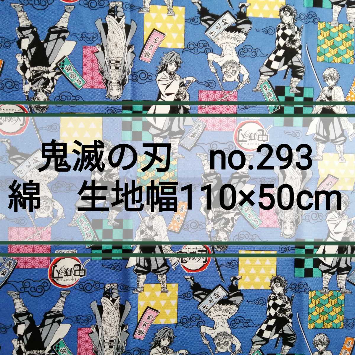 > no.293 青地 鬼滅の刃 生地110×50cm 日本製 綿 竈門 炭治郎 禰豆子 我妻 善逸 嘴平 伊之助 鬼殺隊 冨岡 義勇 オックス生地 プリント 布