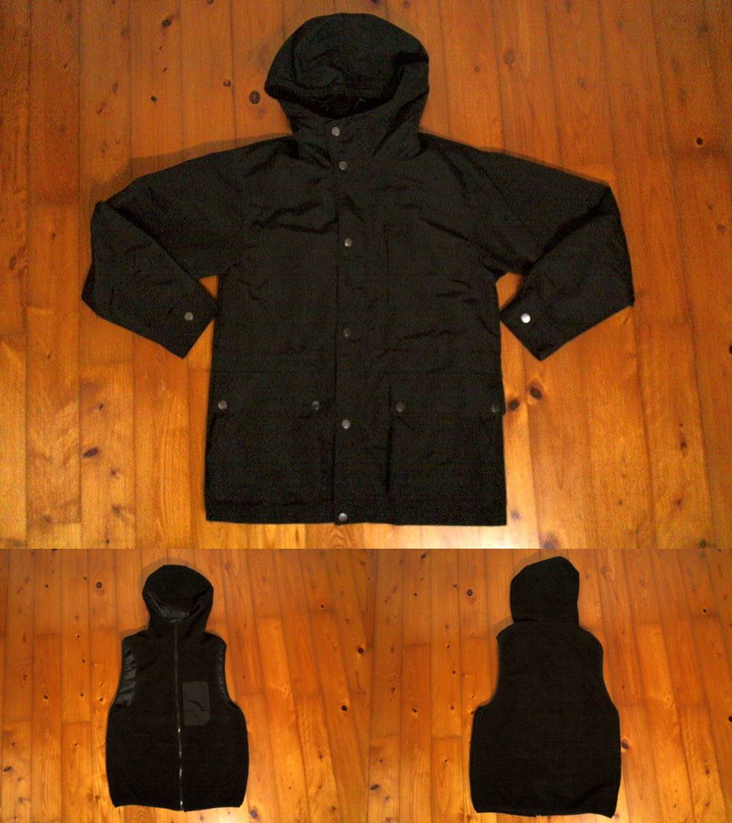 > ★ジーユー【GU】2WAY ボアライナー ジップアップ パーカー ジャケット ベスト ジャンパー S 黒 ブラック