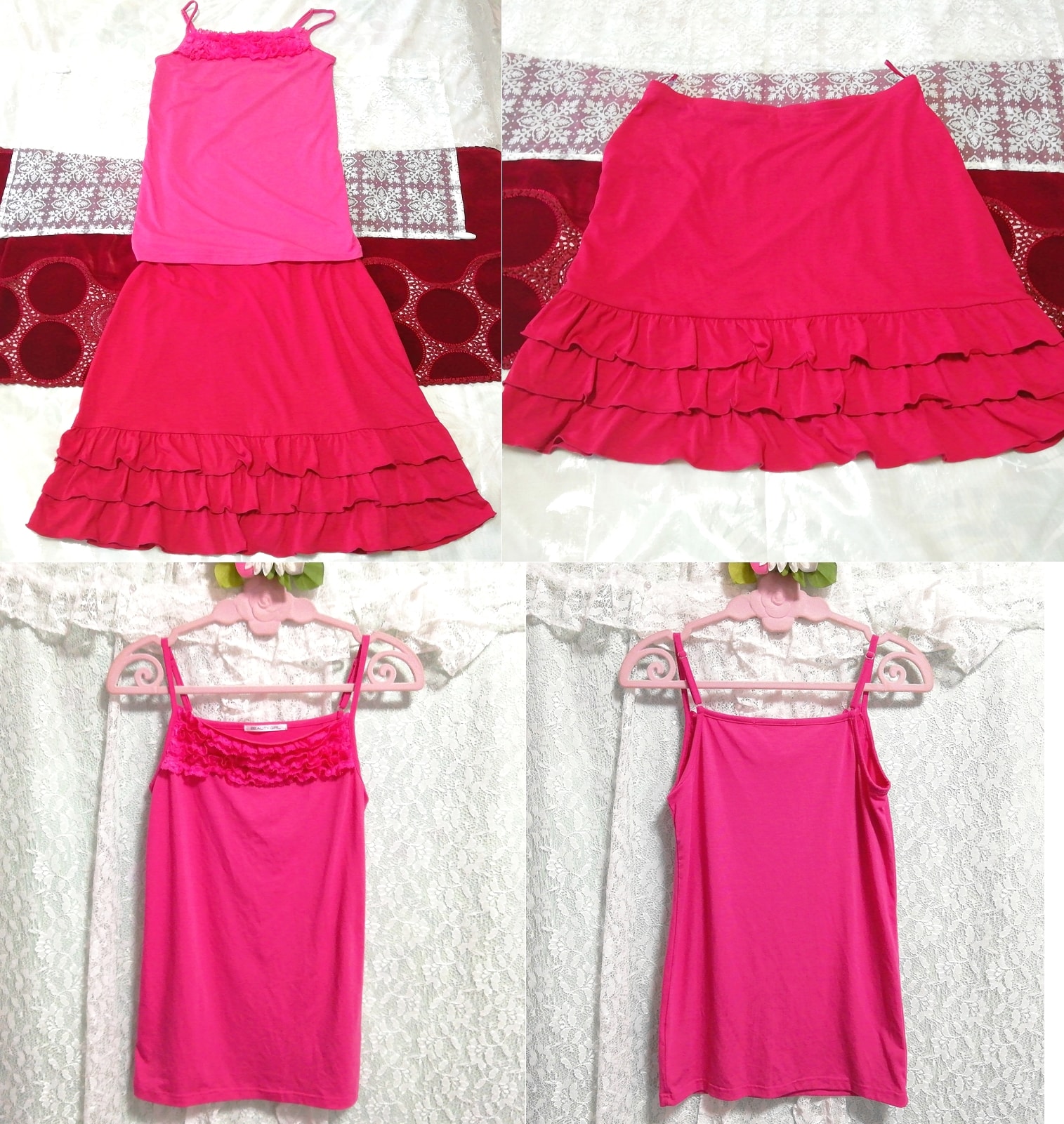 > ピンクレースキャミソール ネグリジェ 赤フリルミニスカート 2P Pink lace camisole negligee red frill mini skirt