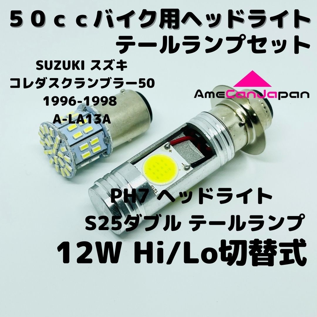 - SUZUKI コレダスクランブラー50 1996-1998 A-LA13A LEDヘッドライト PH7 Hi/Lo バルブ バイク用 1灯 S25 テールランプ1個 ホワイト 交換用
