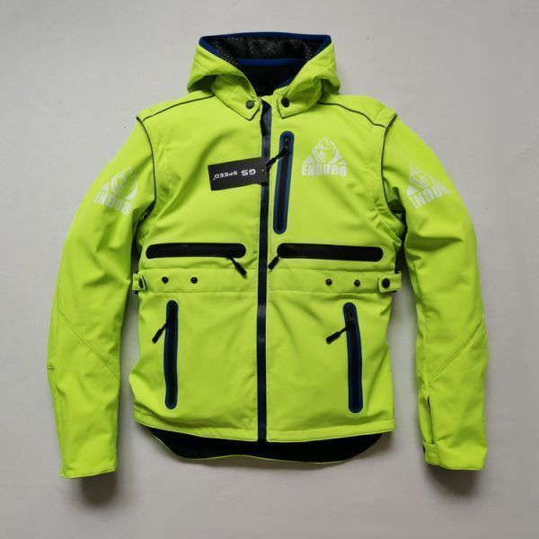 - SALE! バイクジャケット メンズ 人気 ライダースウエア オフロード フード 格好いい 袖脱着可 春秋夏 カジュアル イエロー[サイズ 選択可]