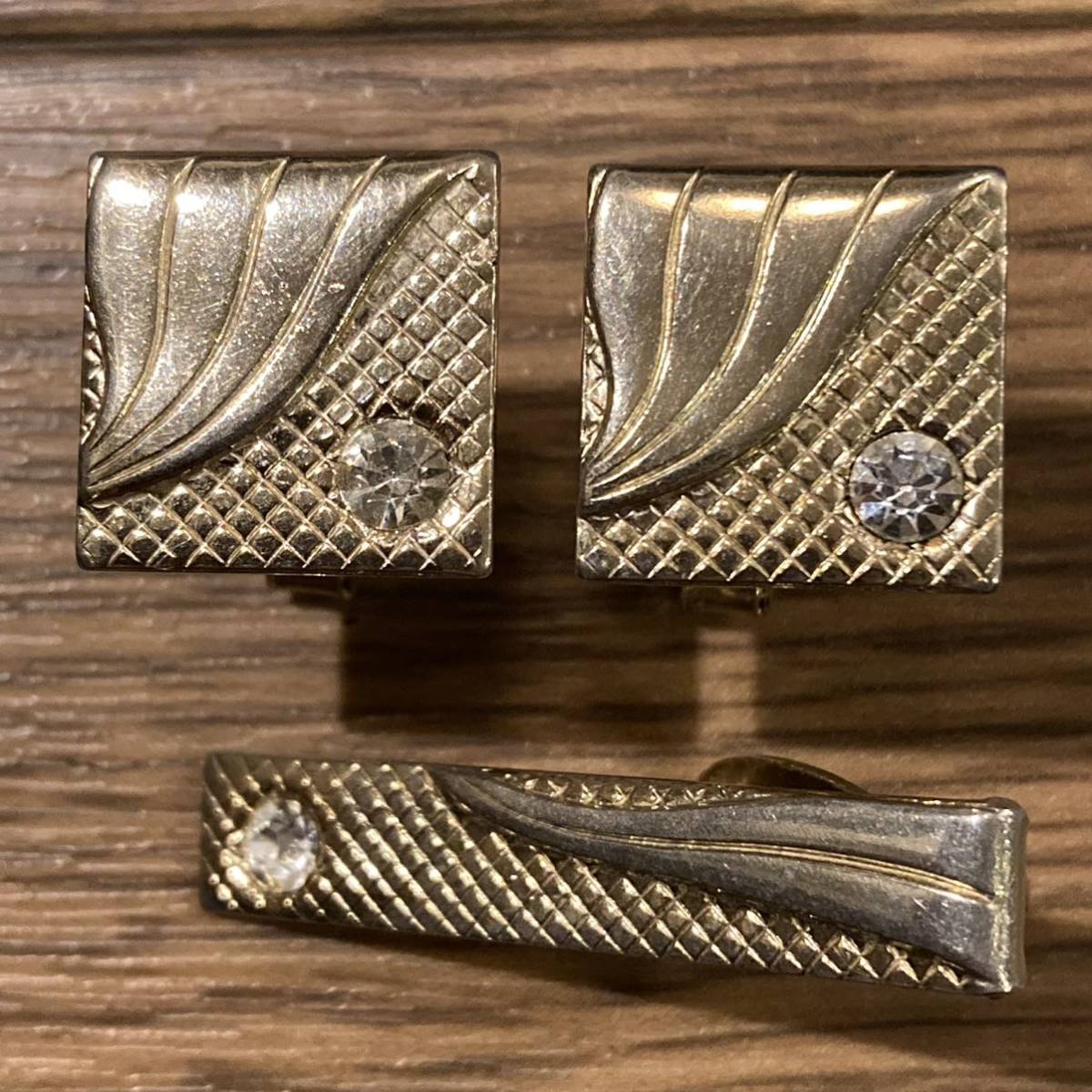 - 送料無料 US ヴィンテージ カフリンクス ネクタイピン アンティーク ラインストーン