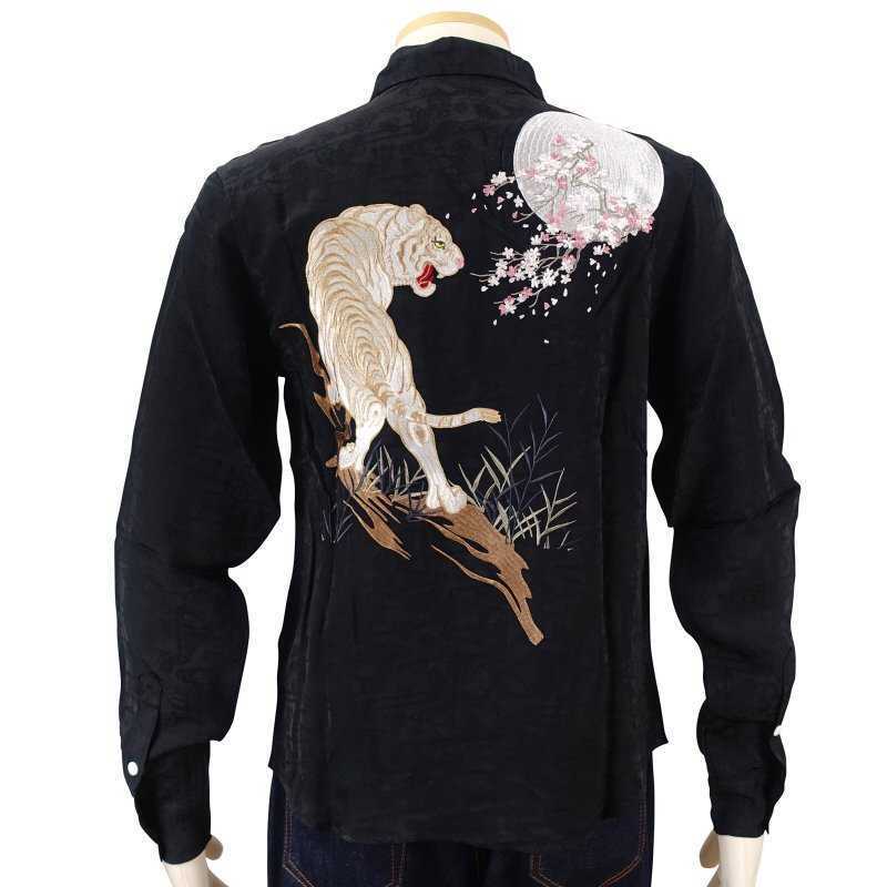 - 花旅楽団/桜虎/刺繍ジャガードシャツ/ブラック/XL/LS-002/サトリ