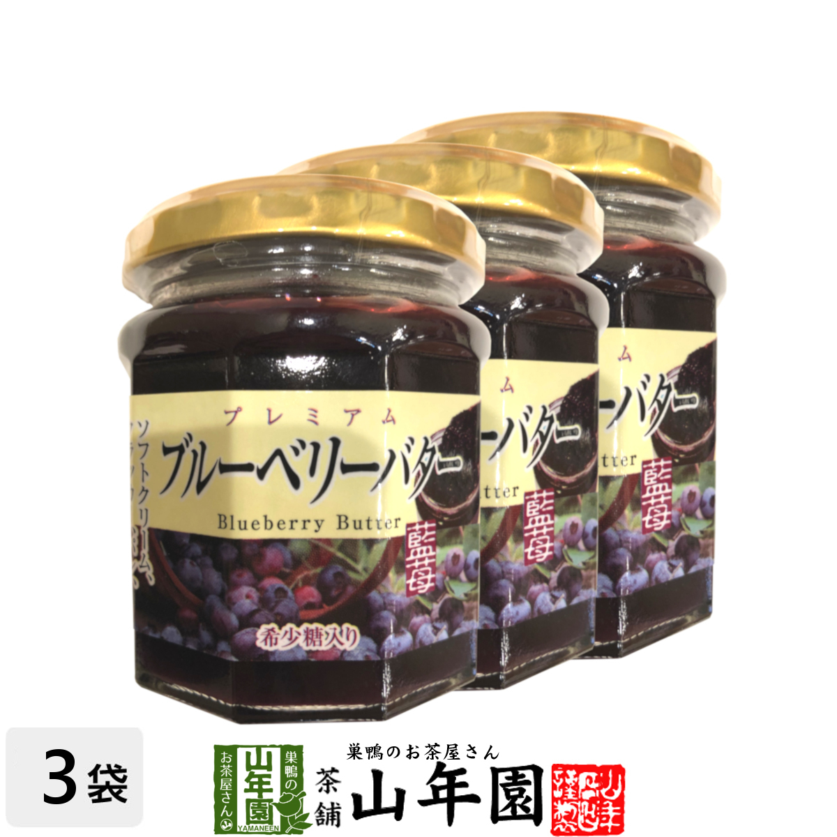 > プレミアム ブルーベリーバター 200g×3個セット 希少糖入り 藍苺 ブルーベリージャム BLUEBERRY BUTTER Made in Japan