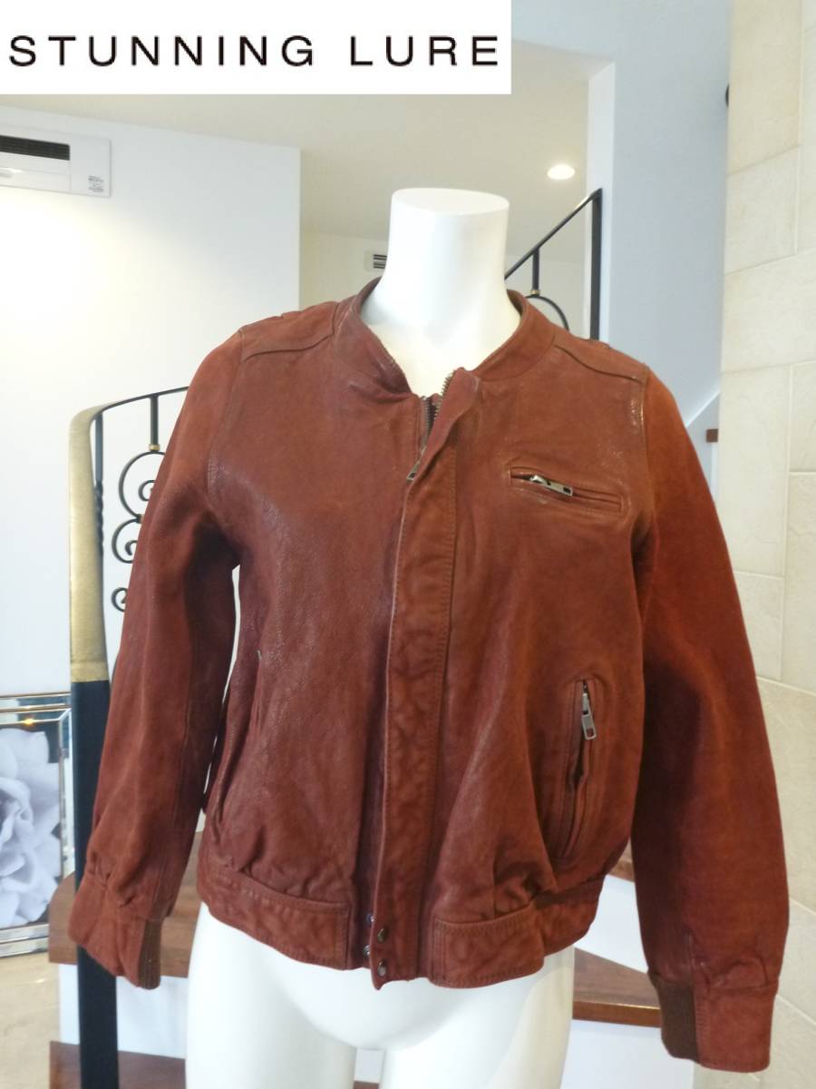 > 6万 STUNNING LURE(スタニングルアー) ★赤レッド 山羊 本革レザー ジャケット ジャンパー 38 M相当