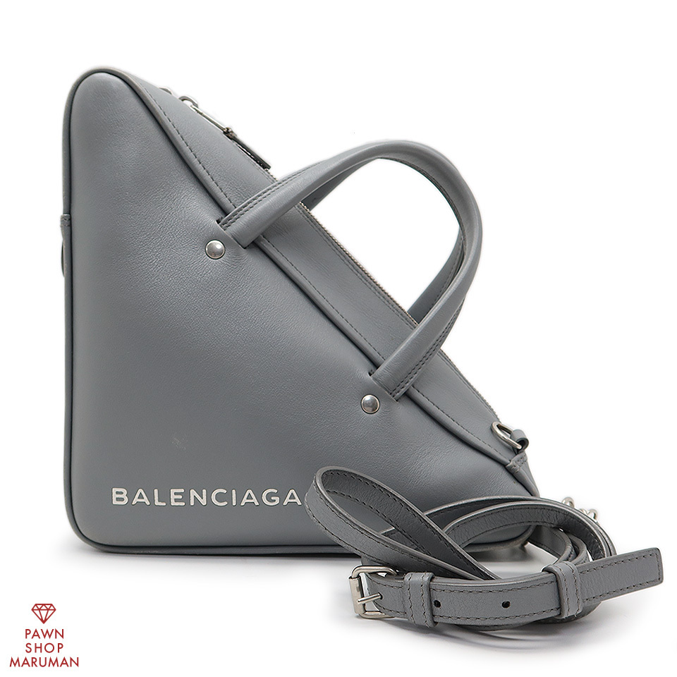 - バレンシアガ トライアングルダッフルショルダーS 476975 C8K02 1230 レザー ライトグレー×シルバー金具 【丸万質舗】