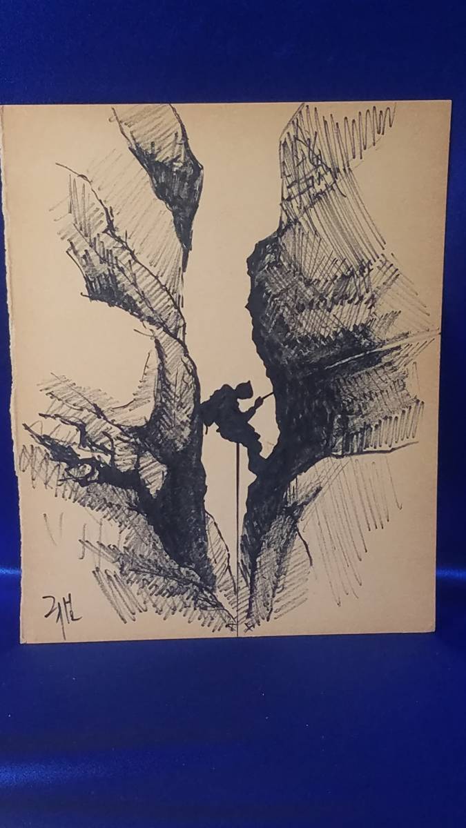 - ペン画 1978年 43年前 「大チムニー懸垂下降」 雅 紙の劣化 厚紙です 23×29 cm 額縁無し まとめ取引歓迎 蔵出し品