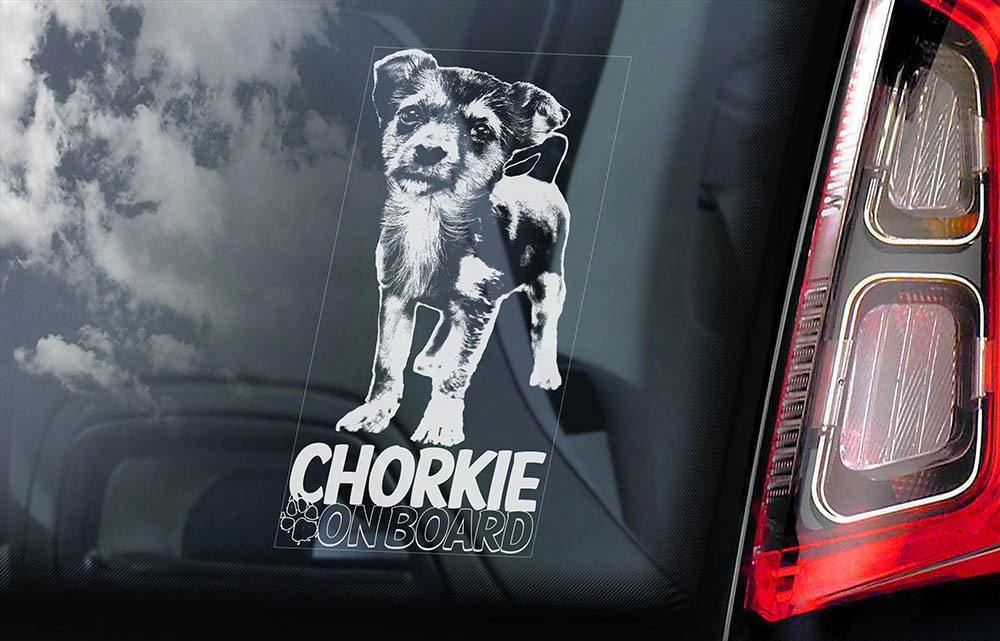 > ◆チョーキー(チワワxヨークシャーテリア)Chorkie@外張り カーステッカー 20×10cm外貼り カー ステッカー シールDOG ON BOARD@D1 3299