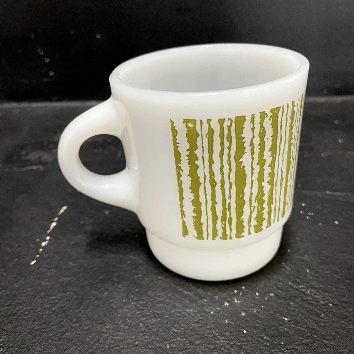 > USAアンティーク 60’s Fireking スタッキング マグカップ / シャギーストライプ ファイヤーキング 食器 アメリカ製 ミルクガラス プリント
