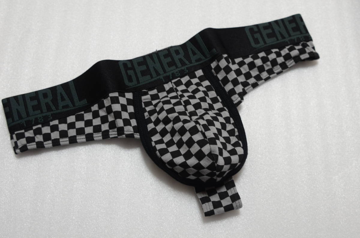 - 『送料無料』★GENERAL★綿混素材★メンズTバックショーツ★柄物★Mサイズ★チェッカー柄★格子模様★グレー×黒★