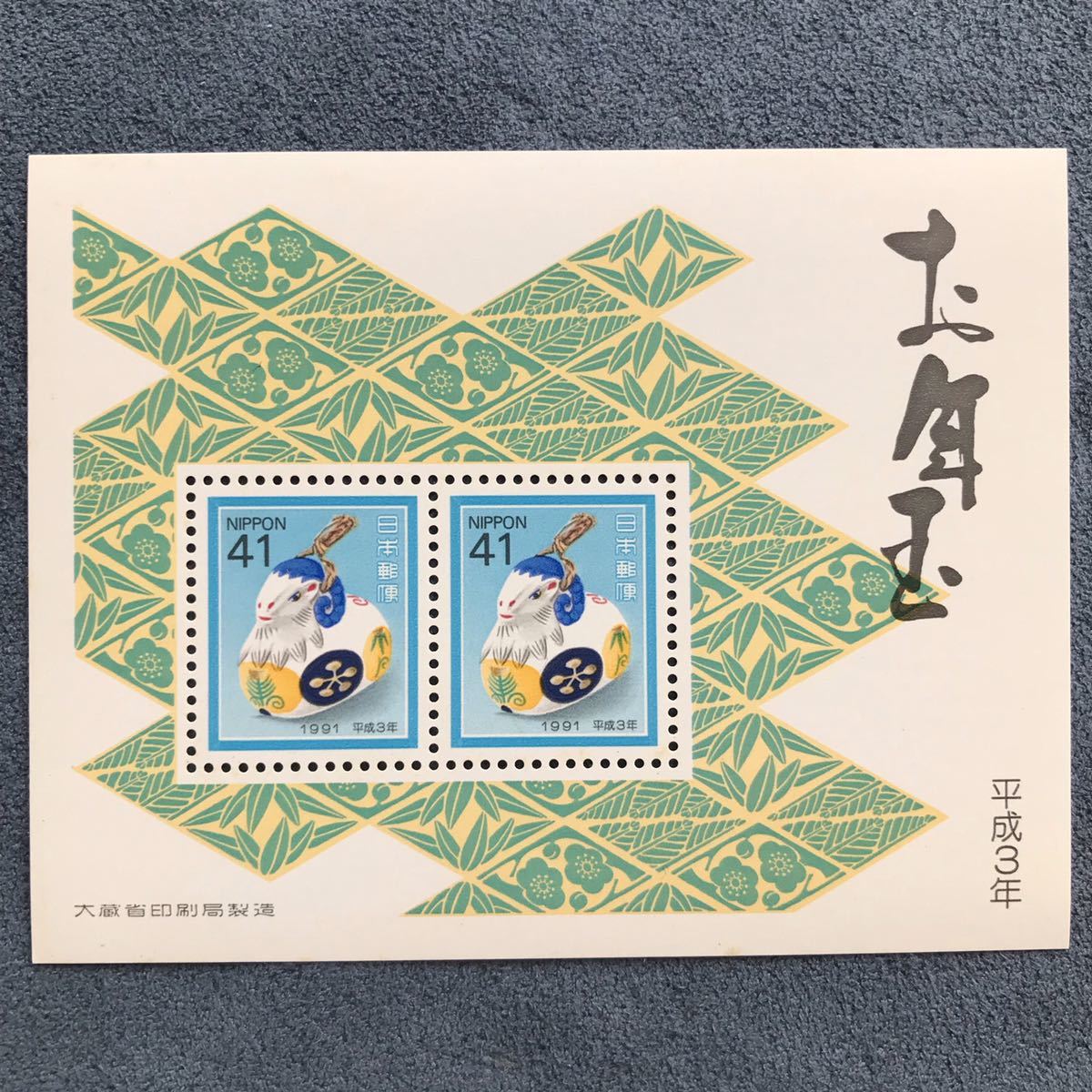> 年賀切手「平成3年 お年玉切手 小型シート 1枚」41円×2★1991年発行・長期保管品