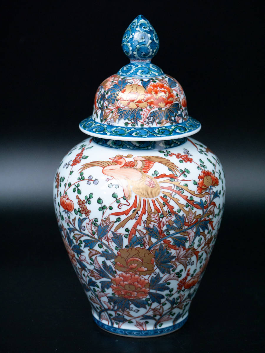 - 【値下げ交渉有り】 館林源右衛門 造 金彩 染錦 鳳凰に花唐草文 蓋付 沈香壷 花瓶