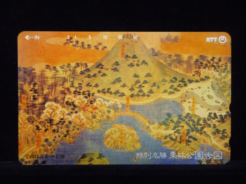 - テレカ 50度 特別名勝 栗林公園古図 偃月橋 イラスト 未使用 T-2348