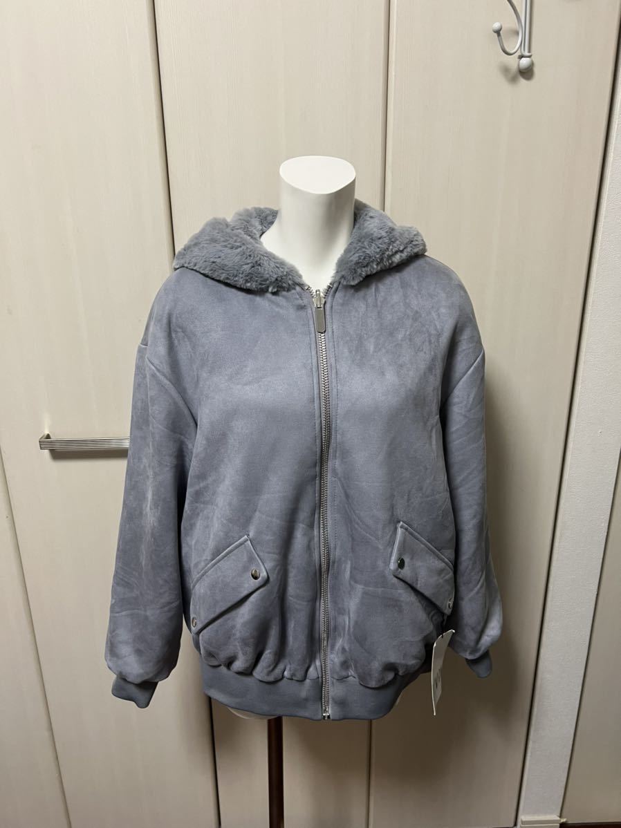 - 新品 ZARA ザラ フェイクスエード フーデッドブルゾン グレー Mサイズ 6000円より値下げ
