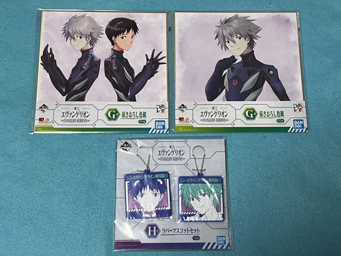 > ★即決 一番くじ エヴァンゲリオン G賞 H賞 3種 碇シンジ & 渚カヲル ラバーマスコットセット 色紙 EVANGELION HEROINES