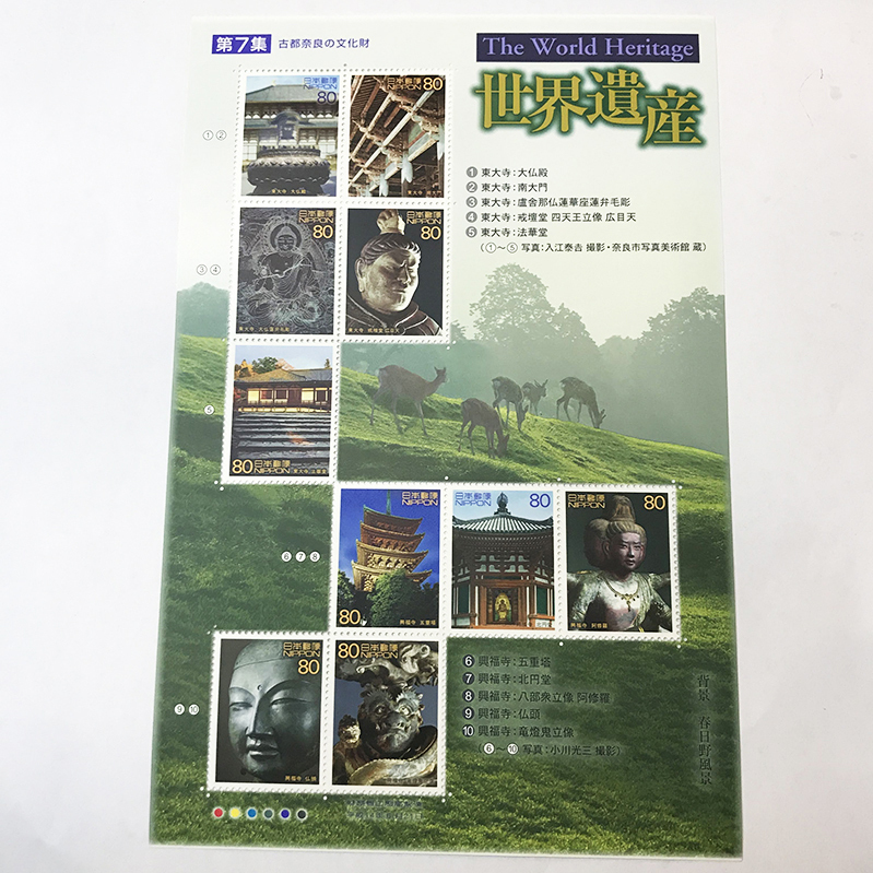 - qos.32-125 世界遺産 第7集 古都奈良の文化財 80円×10枚 切手シート1枚