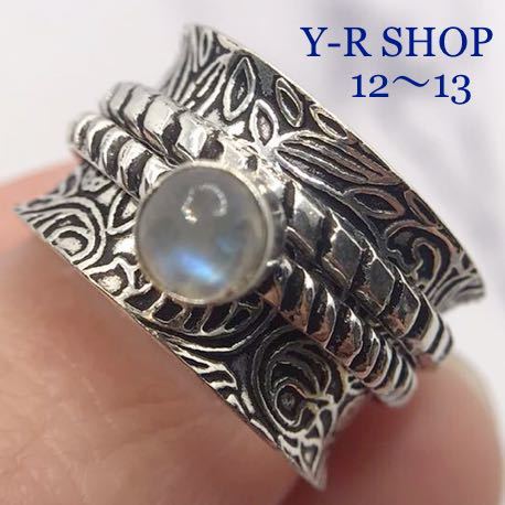 - 天然石★12号13号★ブルームーンストーンの型押しシルバーリング★レディース指輪シルバー 925刻印カラーストーン Y-RSHOP新品宝石インド
