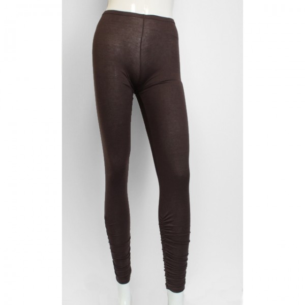 - レギンス レディース 婦人 パンツ Mサイズ 発熱 くしゅくしゅシャーリングが可愛い♪すっきり見せるレギンス チョコブラウン